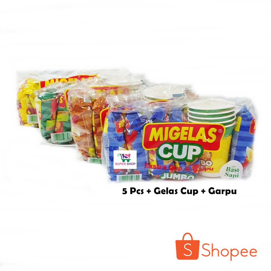 Migelas Cup Jumbo Isi 5 Pcs Plus Gelas Garpu Mie Instant